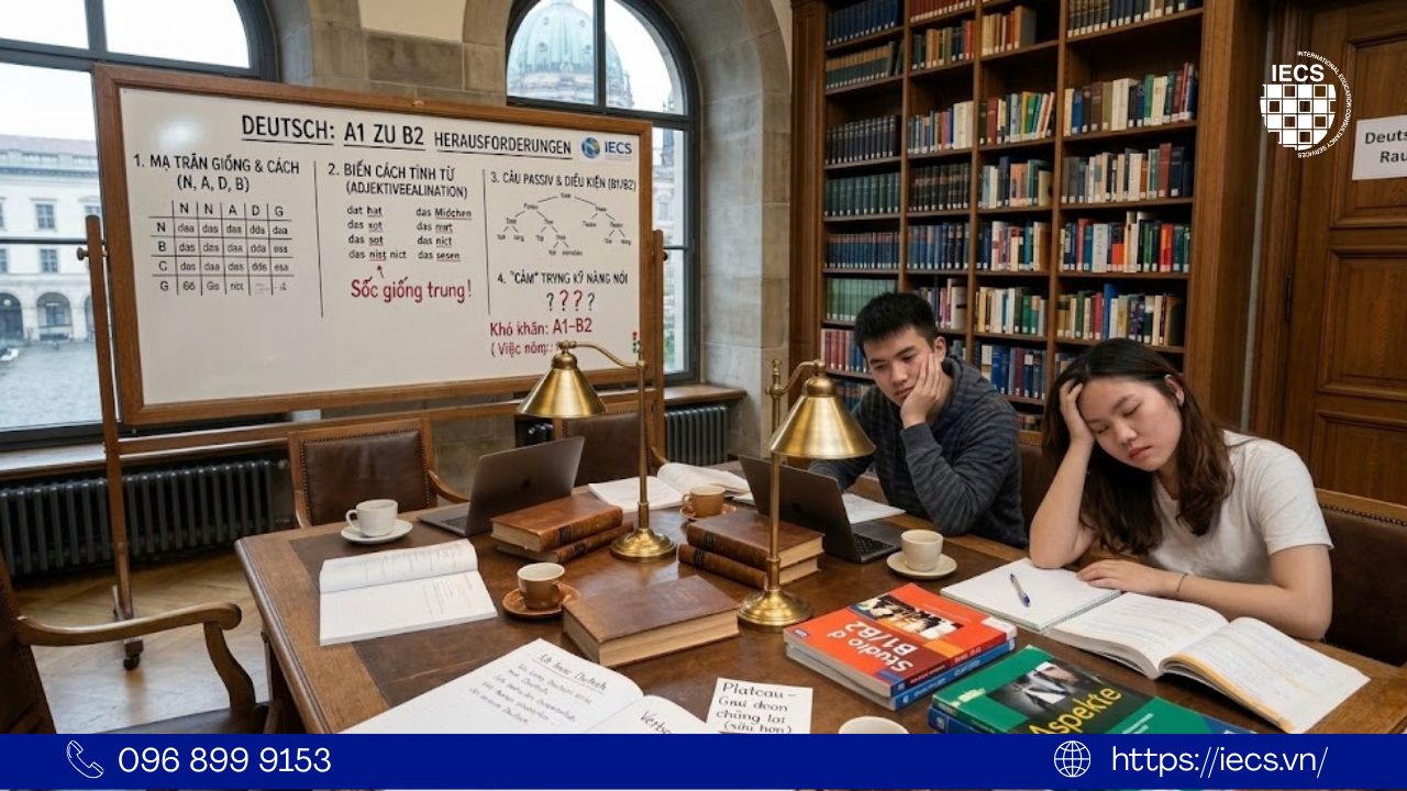 Hành trình theo đuổi lộ trình học tiếng Đức từ số 0 đến B2 là cuộc sàng lọc tự nhiên khép kín. Người trụ lại không phải kẻ thông minh nhất, mà là người kiên trì nhất và có một chiến lược khôn ngoan nhất. Chúc bạn chân cứng đá mềm vào hành trình đầy hy vọng này! Hãy để IECS trở thành tấm vé đưa bạn đến tương lai tươi sáng tại trời Âu.
